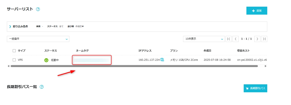 わかりやすい名前にしておくと、複数サーバーを契約したときに便利です。