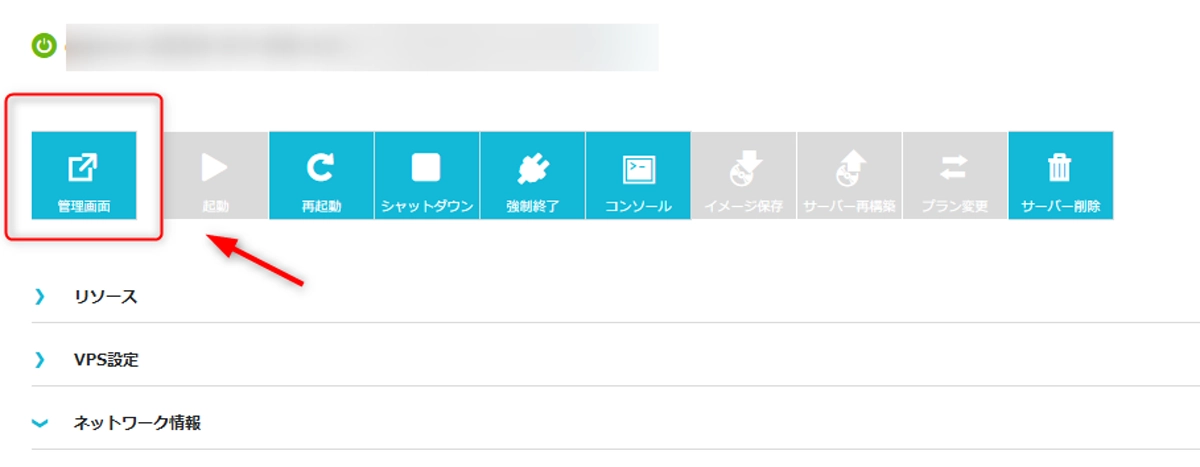 契約が完了すると、ConoHa全体の管理画面に自動的に移動。