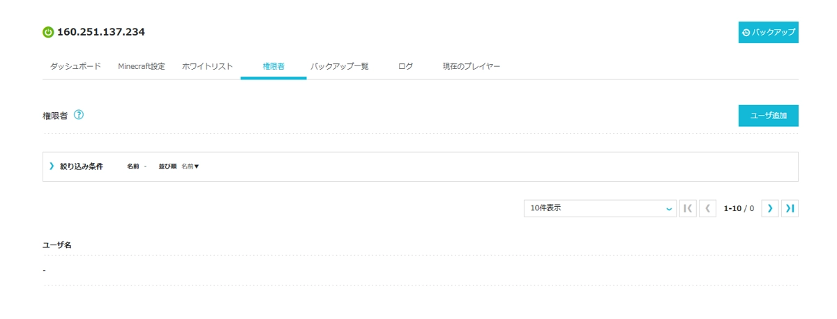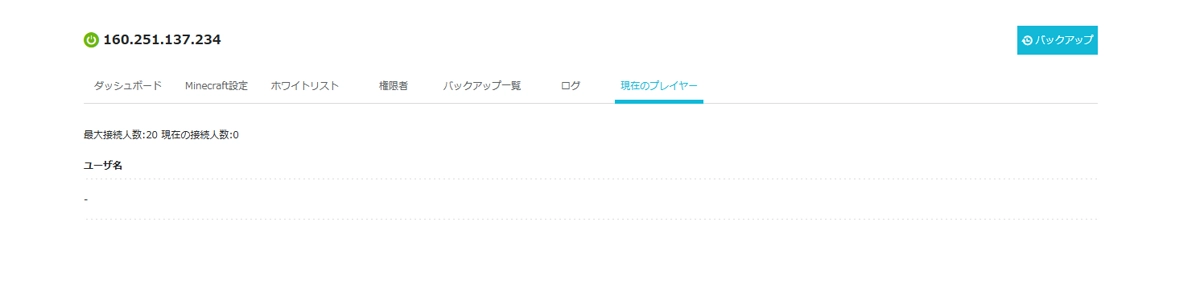 現在接続しているプレイヤーも、Web画面から確認できます。