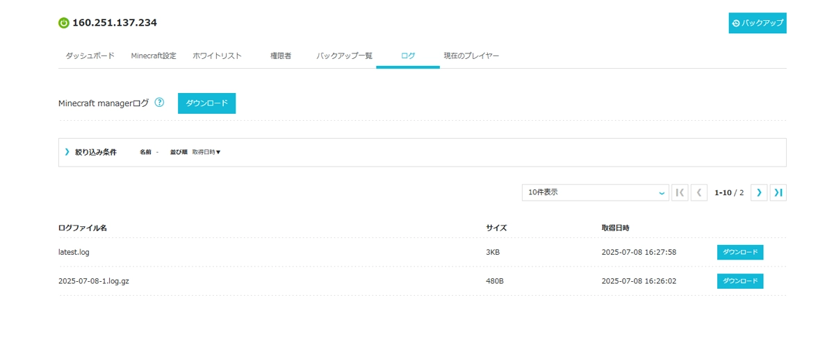 ログもWeb画面からダウンロードすることができます。