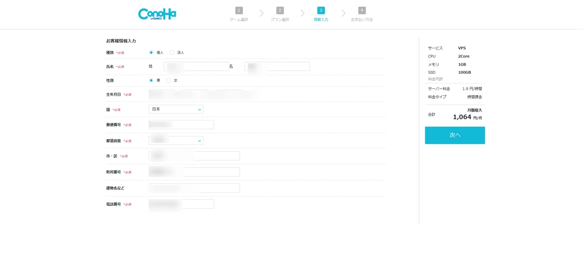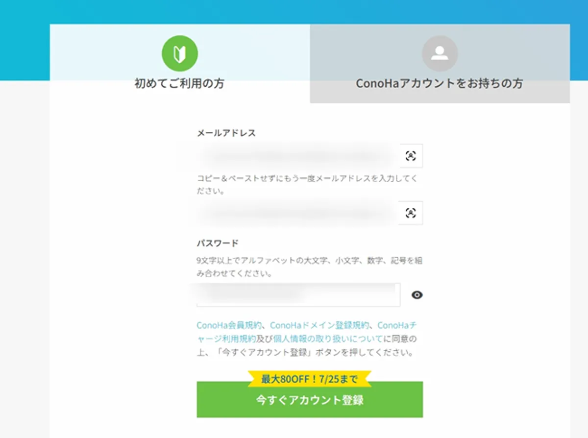 次へ進むと、ConoHaアカウントを作成する必要があります。