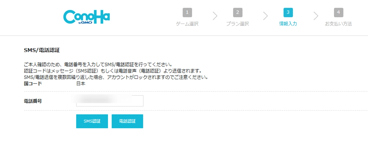 その後に、電話番号認証をします。SMSや電話番号で番号を教えられます。