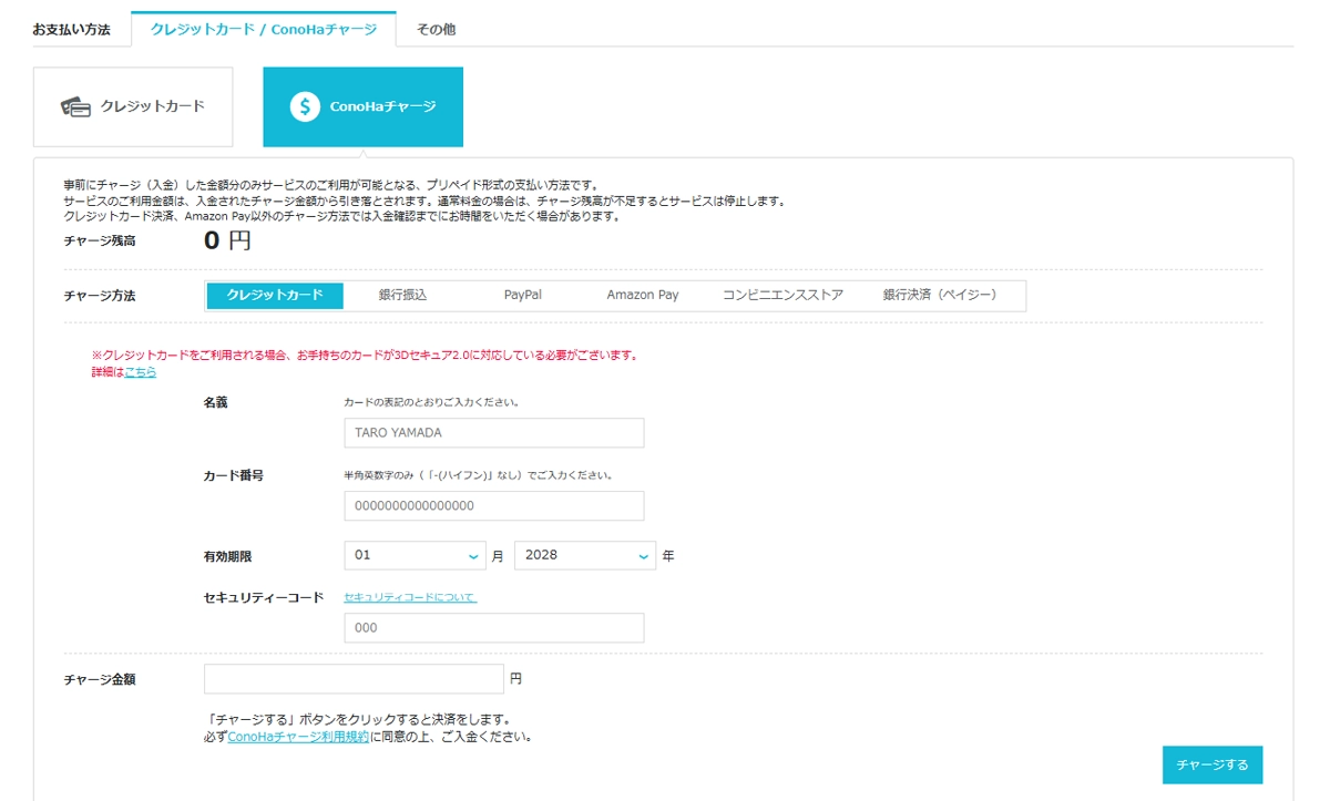 後払いのクレジットカードと、チャージ式のConoHaチャージです。