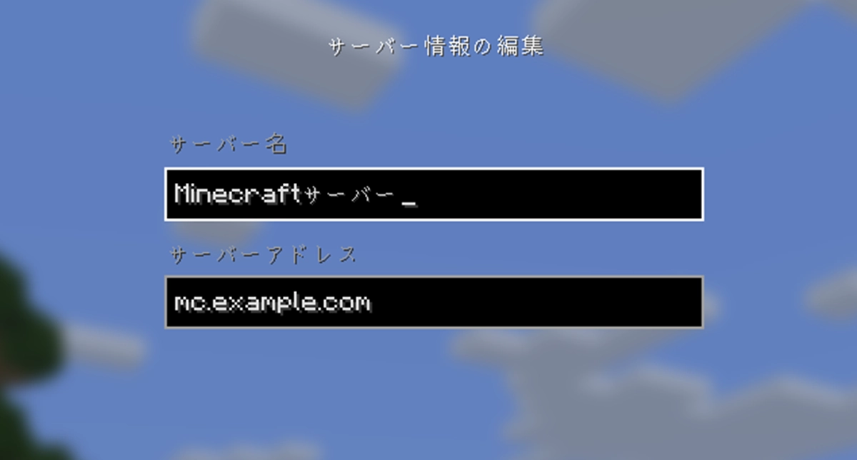 このように設定すると、マイクラの接続画面で 「play.example.com」 と入力するだけでサーバーに接続できます。