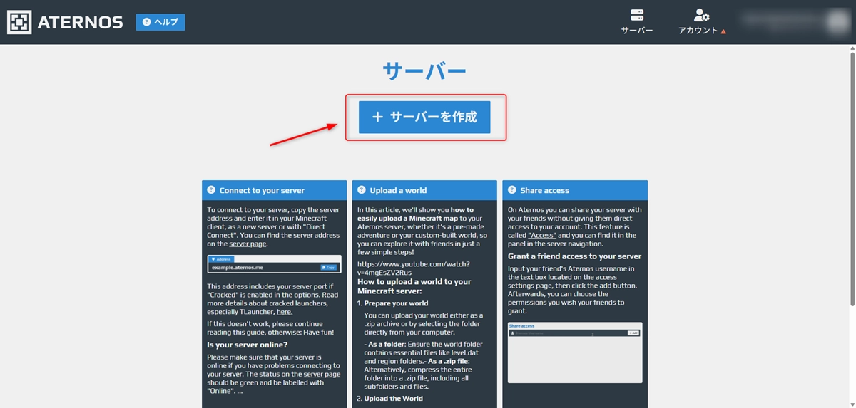まずはAternosかXServer GAMEsでアカウントを作成して、実際にサーバーを立ててみましょう。