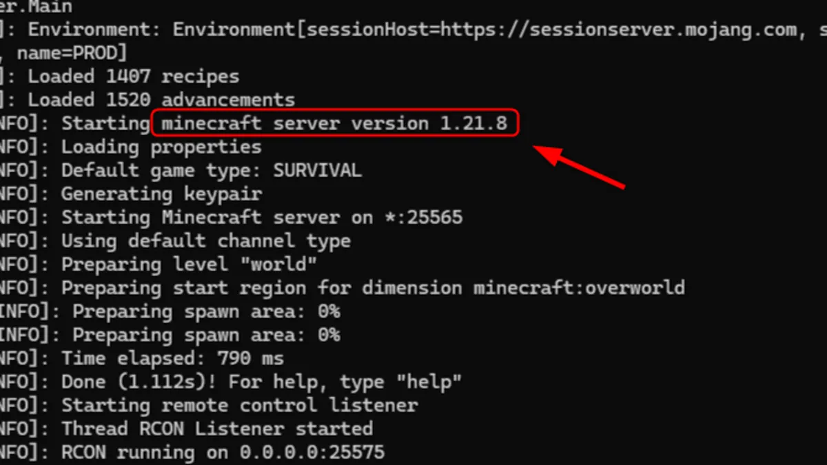 サーバー起動時に表示される行に「Starting minecraft server version X.X.X」と表示されます。