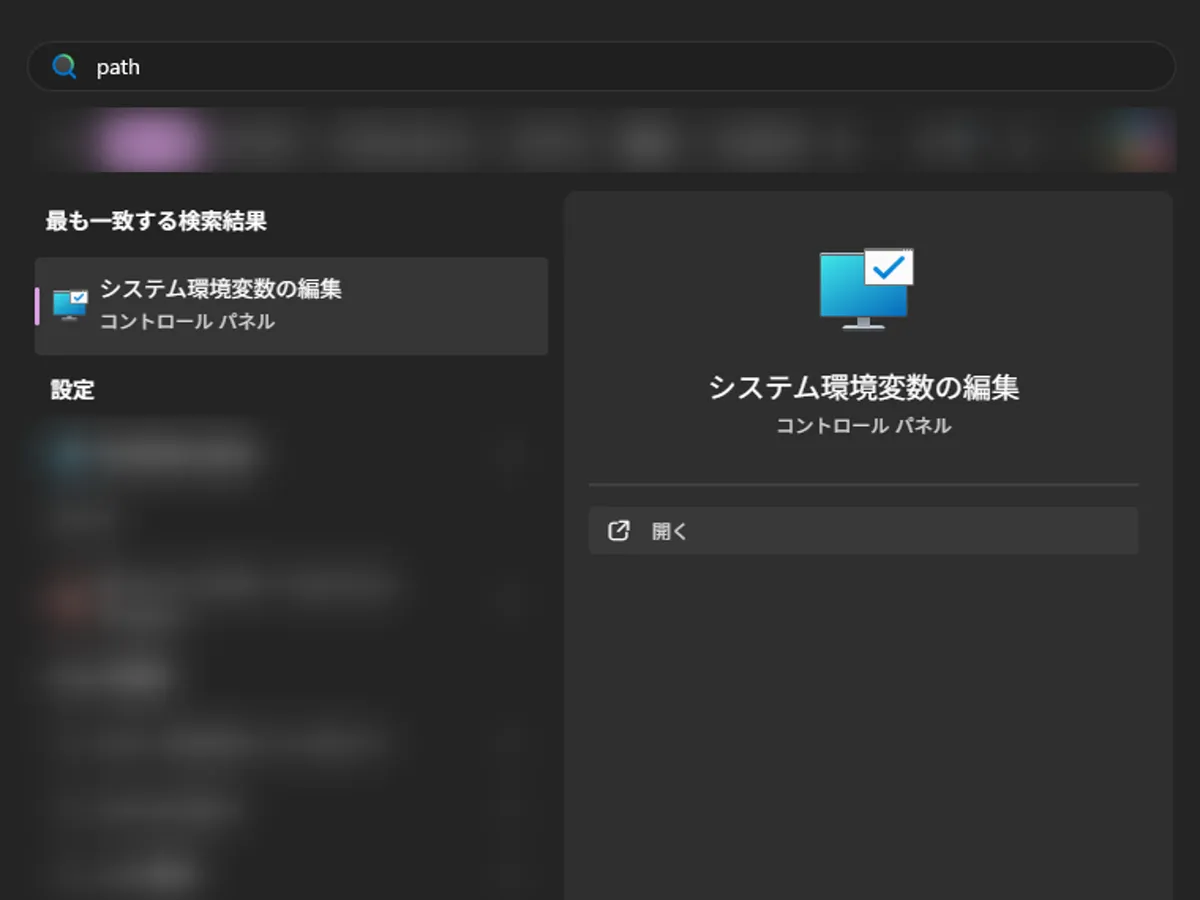 Windowsの検索欄に「path」と入れれば出てきますよ。
