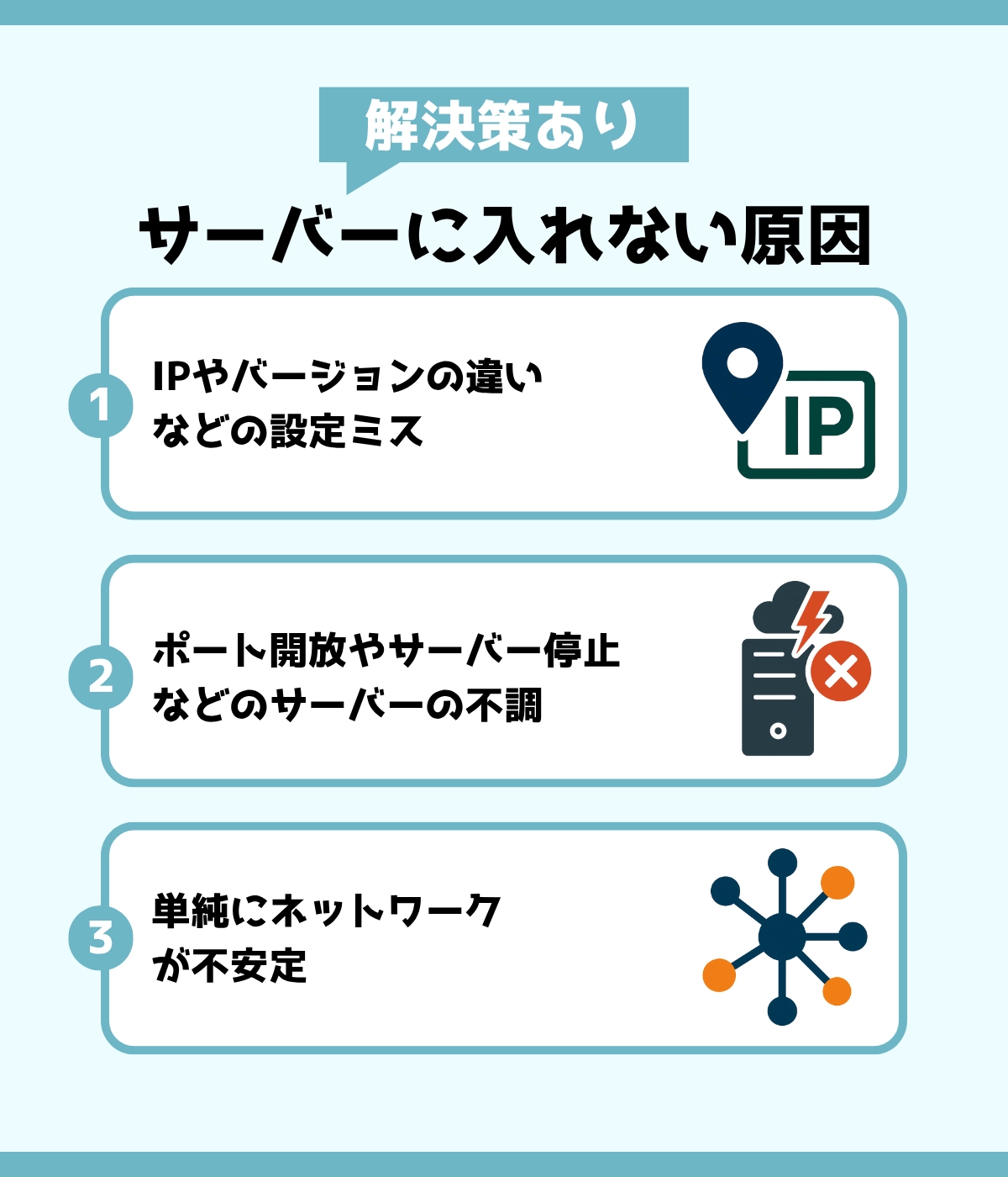 主なサーバーに入れない原因と解決方法を紹介していきますね。