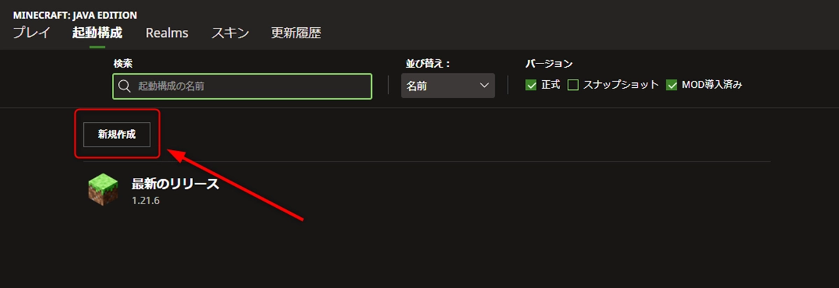 例えば、サーバーのバージョンが「1.21.6」なのに、「1.21」などの別のバージョンを選んでしまうと、サーバーに接続できないんです。