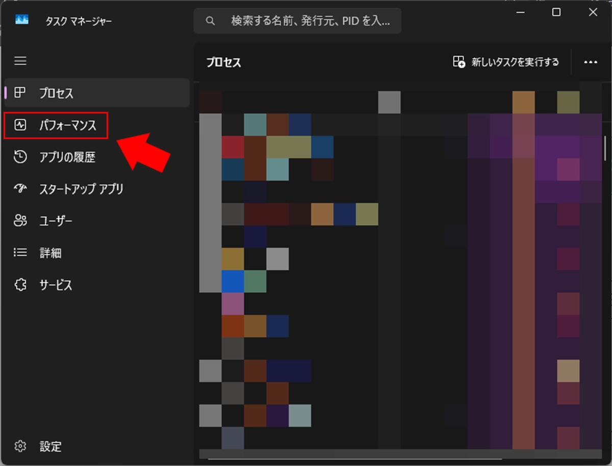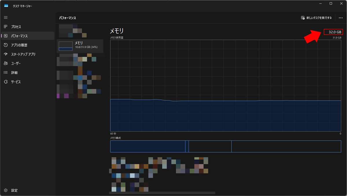 パフォーマンスに移動したら、メモリの部分をクリックしてください。