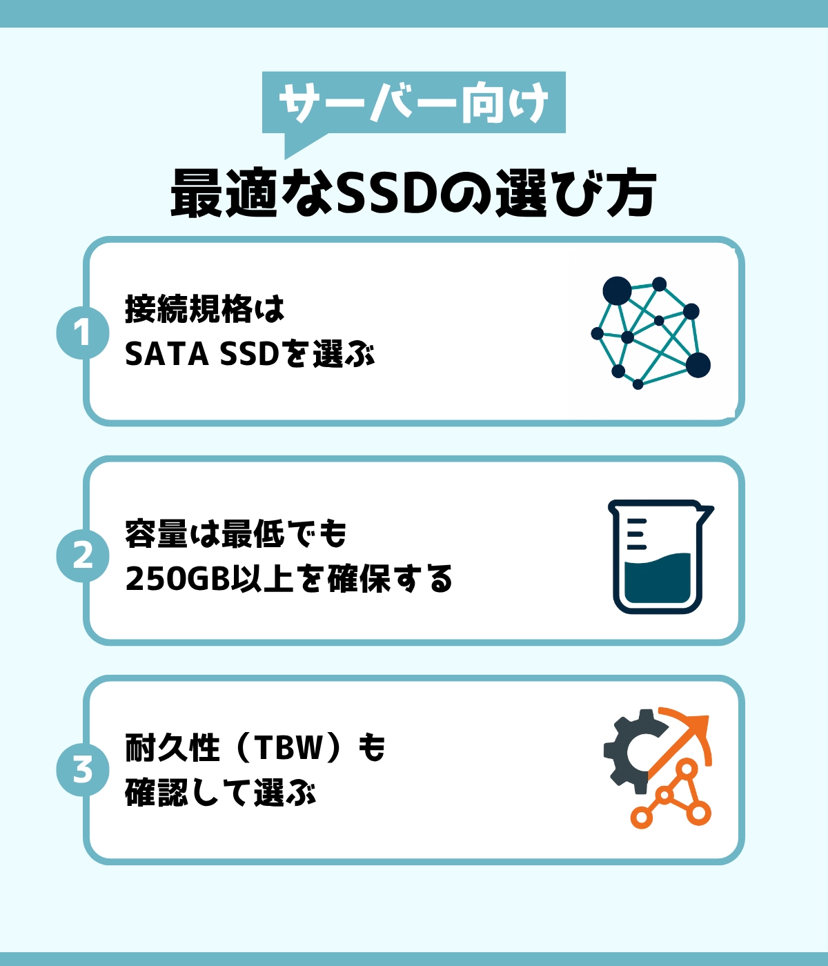 - サーバー用途ではSATA SSDがコスパ面で最適だった