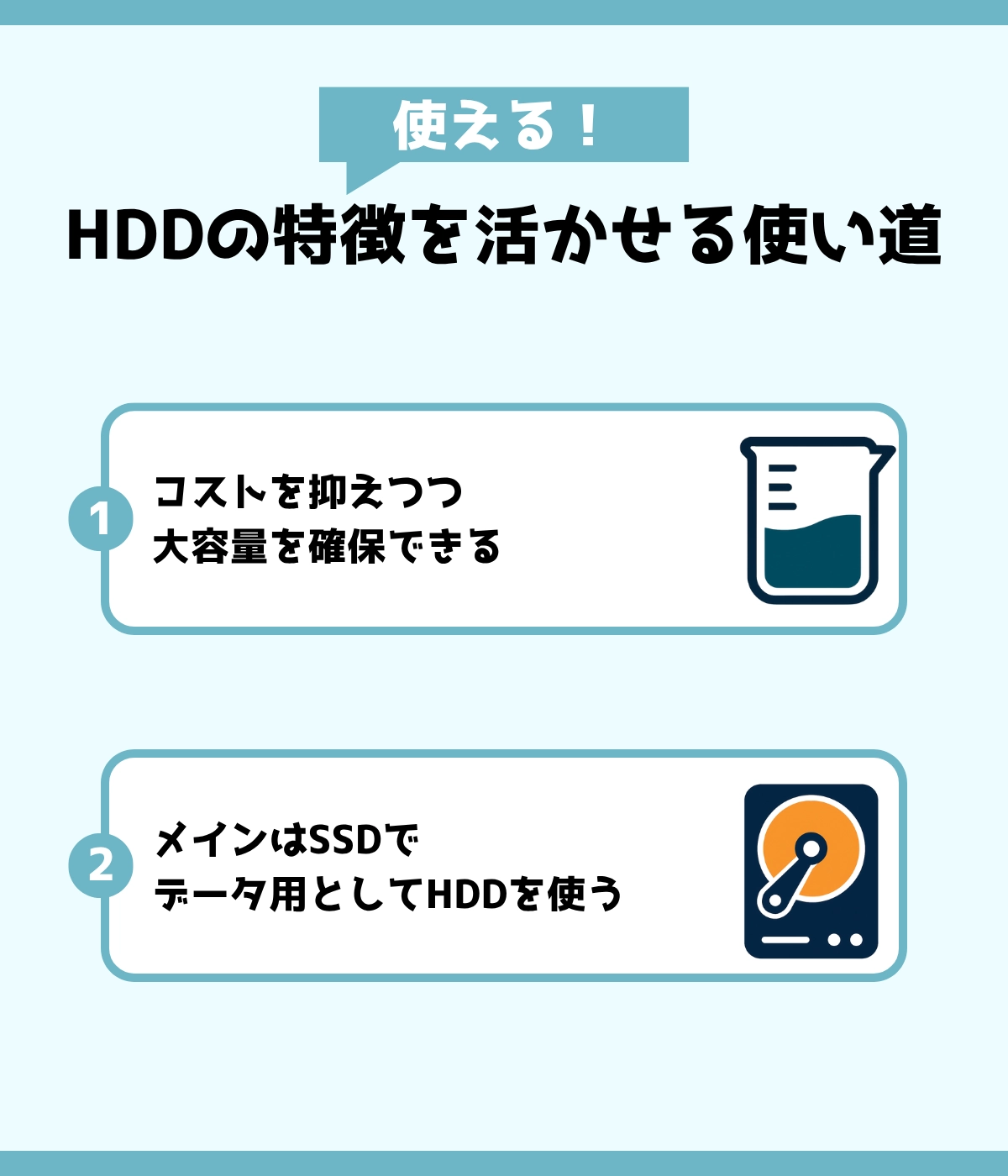 SSDのメリットを解説してきましたが、HDDが全く不要というわけではありません。